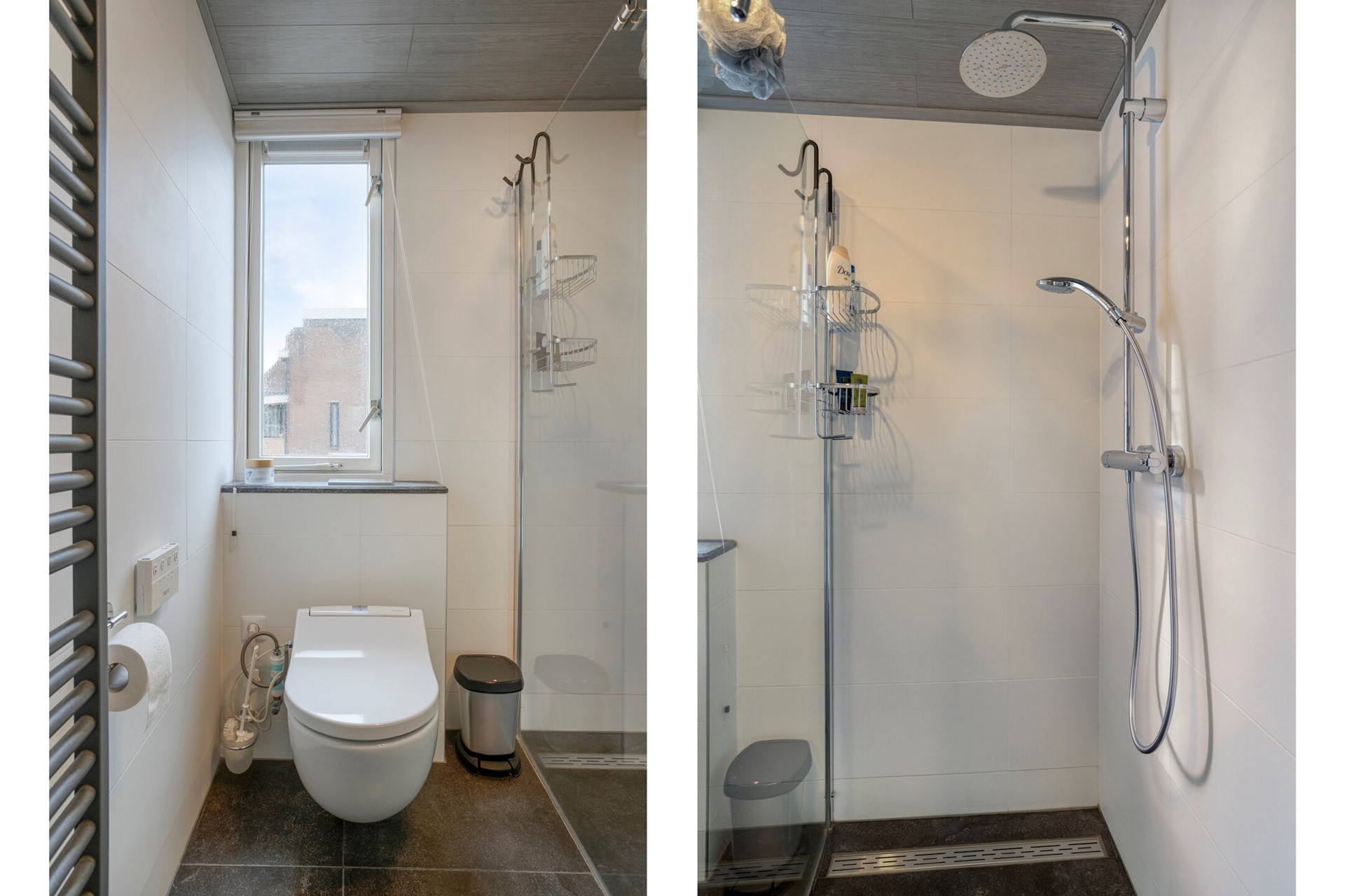 Kom tot rust in deze prachtige badkamer! De moderne badkamer is afgewerkt met een betegelde vloer, betegelde wanden en een kunststof plafond. De badkamer is voorzien van een 2e toilet, inloopdouche, wastafelmeubel, design radiator en een infra rood paneel.