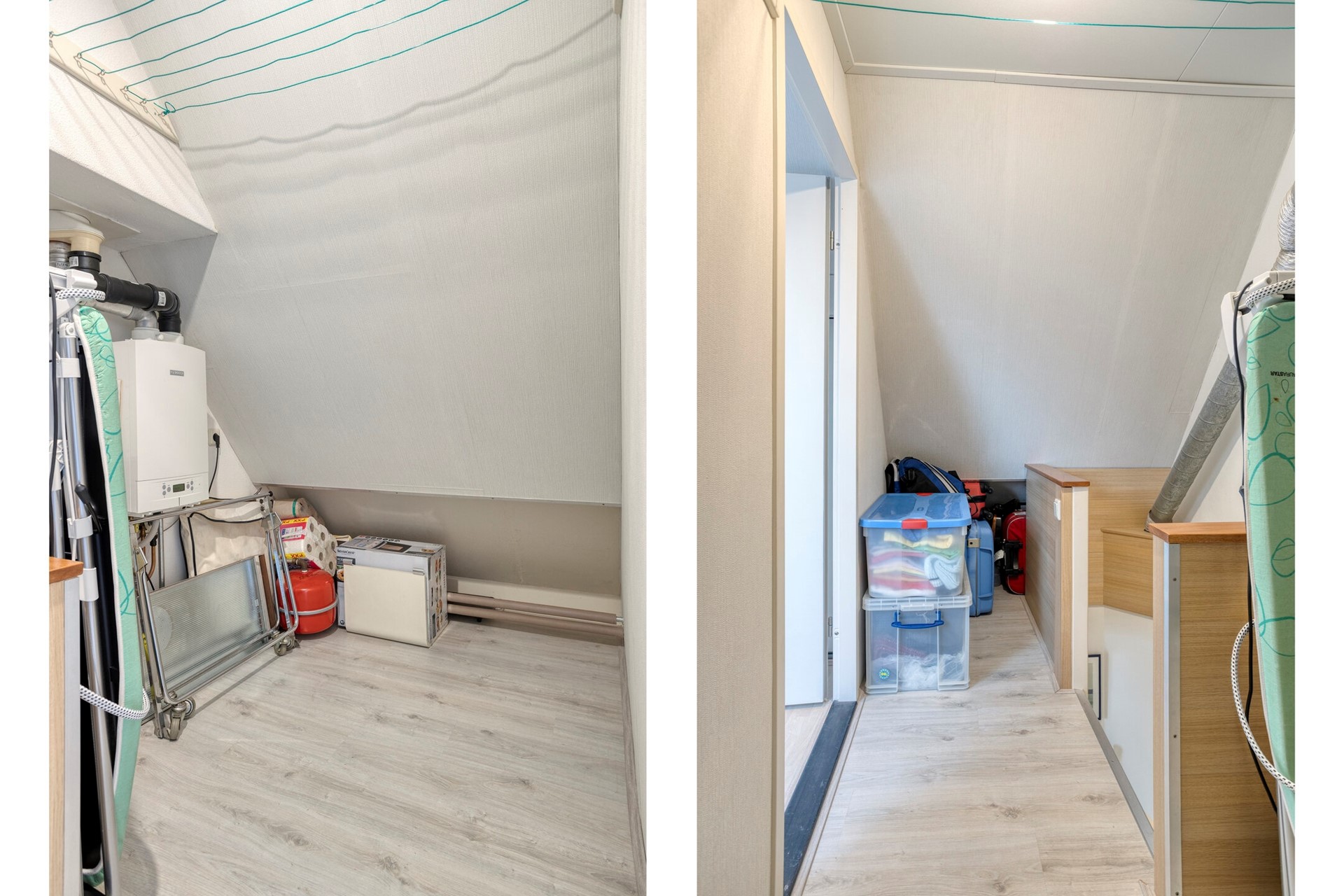Middels de vaste trap op de eerste verdieping bereiken jullie de overloop op de tweede verdieping. De overloop is afgewerkt met een laminaatvloer, behangen wanden en plafondplaten. De overloop biedt toegang tot de derde slaapkamer en beschikt over de CV-Ketel (Bosch, 2013), MV-unit en (eventueel) opstelplaats voor de wasmachine en droger.
